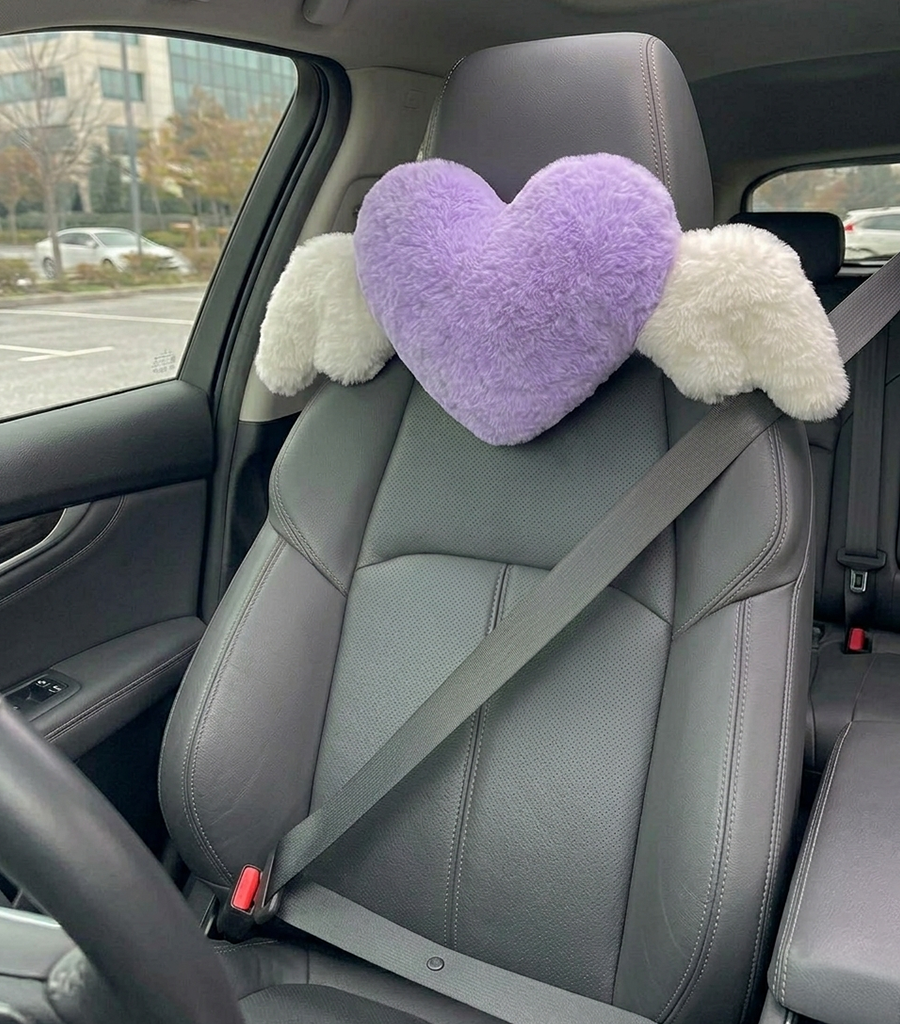 Pembe Kalpli Peluş Araba Yastığı